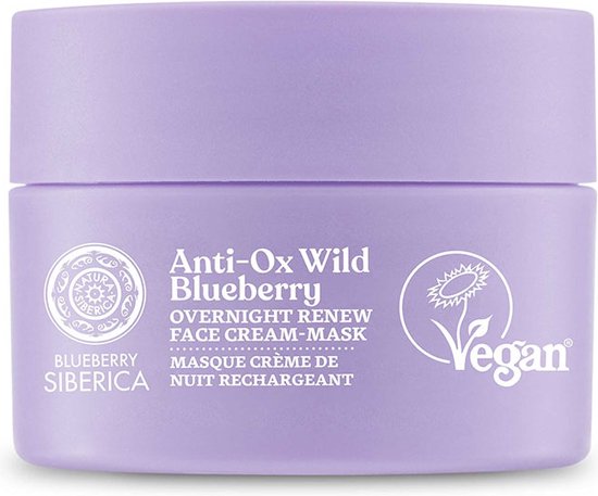 Natura Siberica Bosbessen Siberica Opladend Nachtcrème Masker 50 ml is een masker dat fijne lijntjes helpt glad te strijken, langdurige hydratatie biedt, de glans verbetert en de huid fris laat aanvoelen vanaf het moment dat je wakker wordt. Wilde vulkanische bosbessen bevatten anthocyanen, die het vernieuwingsproces van de huid versnellen, de teint en elasticiteit verbeteren en de huid er weer mooi uit laten zien.Ceramiden houden de hydratatie op peil, versterken de natuurlijke barrière van de huid en helpen de huid te beschermen tegen schadelijke invloeden van buitenaf.Co-enzym Q10 is een krachtige antioxidant die de elastineproductie stimuleert en de elasticiteit en stevigheid van de huid herstelt.Veganistisch.