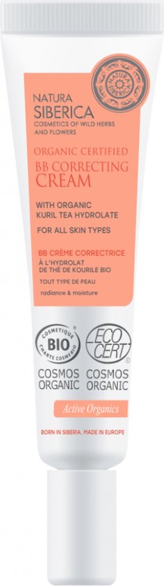 Natura Siberica Glans en Hydratatie BB Corrigerende Crème Organisch 30 ml is een gezichtscrème met organisch Kourile thee hydrolaat. Kourile thee, met de hand geplukt en in het wild geoogst, is zeer geconcentreerd in vitamine C. Deze crème is geschikt voor alle huidtypes.De formule combineert : biologisch Kourile Tea hydrolaat, dat de natuurlijke glans van de huid verstevigt en reactiveert,biologische Siberische pijnboomolie, een unieke natuurlijke bron van meervoudig onverzadigde zuren en vitamine E en F, voedt en verzacht de huid,hyaluronzuur, dat de huid diep voedt en hydrateert en de stevigheid en elasticiteit verbetert,vitamine E, een krachtige antioxidant, helpt huidveroudering te vertragen.Deze crème helpt kleine oneffenheden camoufleren. De huid wordt gehydrateerd en de teint verfraaid. Veganistisch. 99% van alle ingrediënten zijn van natuurlijke oorsprong.20,1% van de totale ingrediënten zijn afkomstig van biologische landbouw. COSMOS ORGANIC gecertificeerd door Ecocert Greenlife volgens de COSMOS-norm.