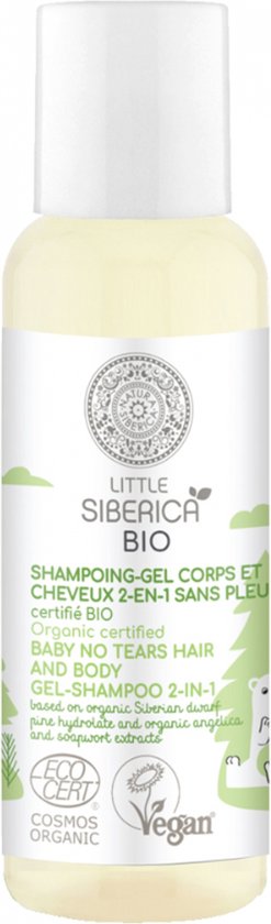 Natura Siberica Little Siberica Organic 2-in-1 Cry-Free Shampoo-Gel Voor Lichaam en Haar 50 ml is een haar- en lichaamsgel-shampoo met organisch Siberisch dwergdennen hydrolaat en organische extracten van engelwortel en zeepkruid.Het reinigt de tere hoofdhuid van je baby in alle zachtheid, beschermt tegen schadelijke invloeden van buitenaf en verzacht en hydrateert de tere babyhuid. Hydrolat is een geconcentreerde cocktail van vitaminen en micro-elementen verkregen door distillatie van planten. Babyverzorgingsproducten op basis van Hydrolat reinigen de babyhuid op milde wijze en maken haar zacht en zijdeachtig. Veganistisch. 97,3% van de ingrediënten is van natuurlijke oorsprong.10,8% van de ingrediënten is afkomstig van biologische landbouw. COSMOS ORGANIC gecertificeerd door ECOCERT Greenlife volgens de COSMOS-norm.