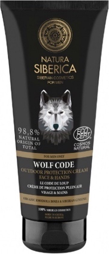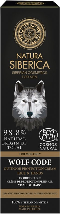 Natura Siberica Man Gezichts- en Handcrème Le Code du Loup 80 ml is een buitenbeschermende crème voor mannen, voor het gezicht en de handen. Of je nu gaat fietsen, joggen of winkelen, deze gave crème beschermt handen en gezicht tegen kou, wind, droogte en milieu-invloeden.De krachtige cocktail bevat een extract van organische Rhodiola rosea en Siberische ginseng om de huid te helpen hydrateren en voeden. 98,8% van de ingrediënten is van natuurlijke oorsprong. COSMOS NATURAL gecertificeerd door Ecocert Greenlife volgens de Cosmos-norm.