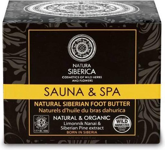 De biologisch gecertificeerde Natura Siberica Natural Siberian Foot Butter, uit de Sauna & Spa lijn, is een rijke verzorging voor je voeten en in het bijzonder geschikt voor zeer droge voeten met eeltvorming. Natural Siberian Foot Butter 120 ml