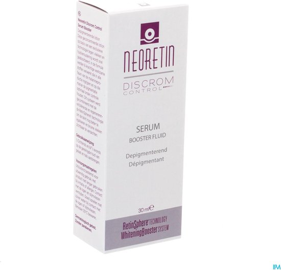 Neoretin Discrom Control Serum Booster Fluid is een geconcentreerde fluid op basis van vlekken- en verouderingsbestrijdende technologieën die snel intrekt. De innovatieve Retinsphere technologie werkt exfoliërend en herstructurerend. Daarnaast grijpt het Whitening Booster System, een krachtig depigmenterend systeem met 6 werkzame stoffen, in alle fasen van de melanineproductie in. Breng dit serum elke avond aan om de pigmentatie zichtbaar onder controle te houden*.
