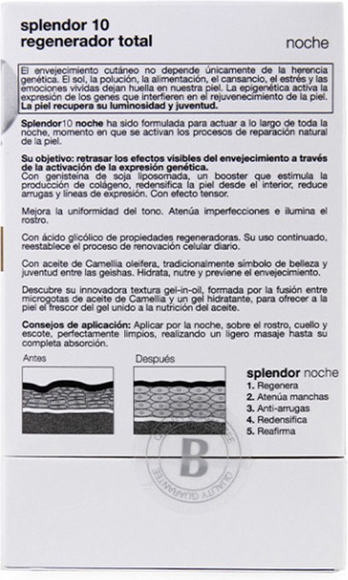 The Night Cream Splendor 10 Bella Aurora (50 ml) is a quality product designed for demanding people who take care of their image and look for the best cosmetics to enhance their beauty. If you are one of them, the 100 % original Bella Aurora products are made for you.