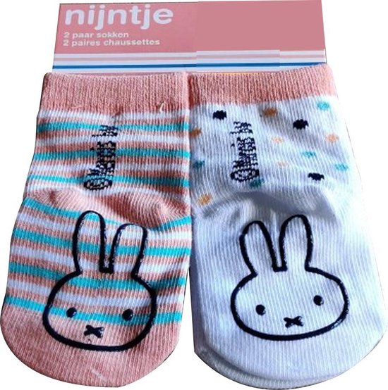 Nijntje Sokken – 12-18 Maanden – 2 Paar – Zalm Roze – Wit – Roze – MIffy – Nijntje