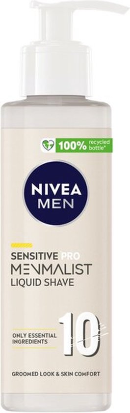 Nivea Men Sensitive Pro Menmalist Vloeibare Scheercrème gebruikt slechts tien milde ingrediënten om je huid te hydrateren en te verzachten. Alles wat je nodig hebt voor een verzorgde look en huidcomfort.