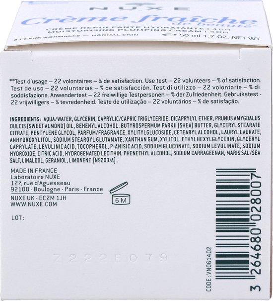 Nuxe CrEme FraIche Moisturizing Plumping Cream 48h 50 Ml