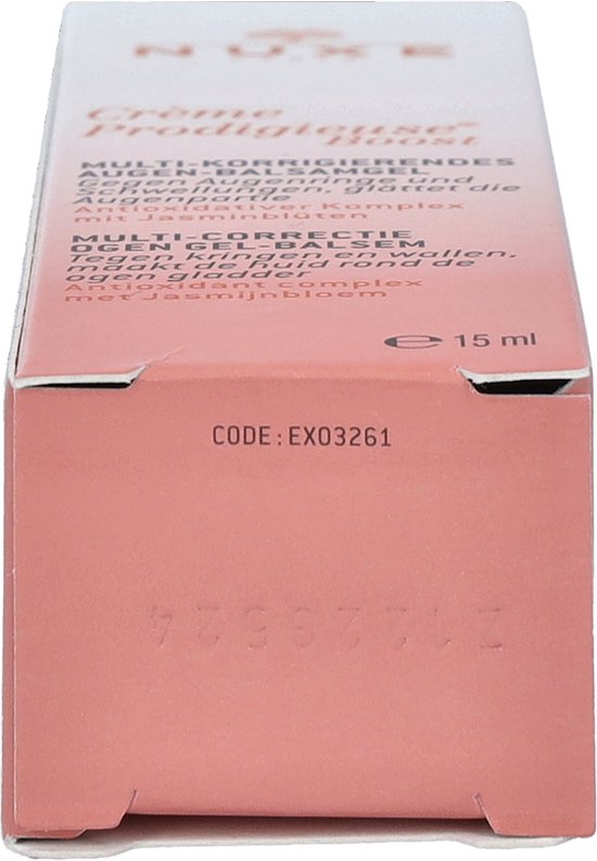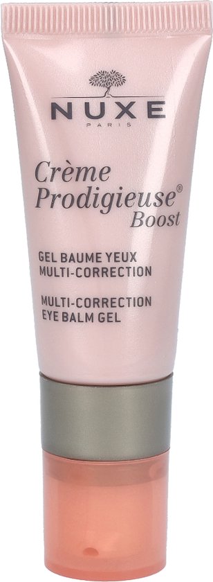 Nuxe CrA me Prodigieuse Boost multi correctie ogen gel balsem is een speciale oogcrA me voor alle huidtypen die blootstaan aan stress vermoeidheid en vervuiling Het vervaagt wallen en kringen met als resultaat een gladdere oogcontour en stralende oogopslag Bevat 91 8 aan natuurlijke ingrediA