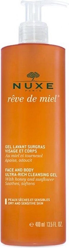 Nuxe RAave de Miel Gel Lavant Surgras Visage et Corps Deze overvette zeepvrije gel reinigt het gelaat en het lichaam zonder de huid uit te drogen en kalmeert Bevat 87 ingrediA