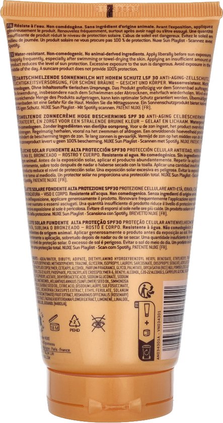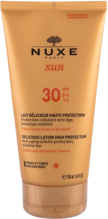 Nuxe Sun Lait Delicieux SPF30 Een heerlijke melk met hoge bescherming met Waterhyacint en Zonnebloem Gebruik Voor u de zon ingaat het product overvloedig aanbrengen