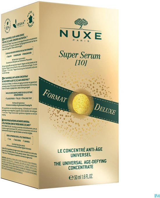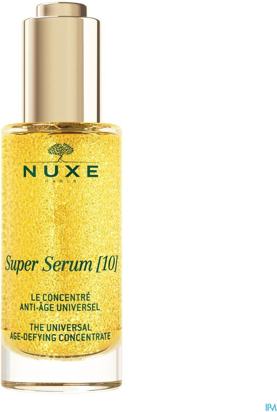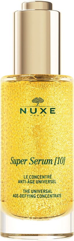 Het Nuxe Face Super Serum (10) Le Concentré Anti-Âge Universel Serum 50 ml biedt een complete verzorging voor de huid, met als doel het verminderen van tekenen van veroudering en het bevorderen van een jeugdige uitstraling.