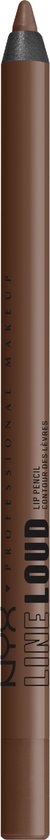 Get loud and get in line! Maak kennis met de langhoudende lip liner die elke look beter maakt met een gladde, zachte en matte finish in 18 sprekende kleuren. Het is tijd om afscheid te nemen van harde, droge old school lip liners zonder kleurafgifte. En zeg hallo tegen de nieuwe gladde, comfortabele lip shapers van NYX Professional Makeup! De formule is verrijkt met Jojoba-olie en vitamine E voor gladdere, zachter uitziende lippen. Nooit uitgedroogd en altijd comfortabel. Deze waterproof, romige formule glijdt soepel over de lippen voor gemakkelijke en nauwkeurige applicatie. Vorm en kleur je lippen met de vegan* formule van ons Line Loud Lip Pencil!