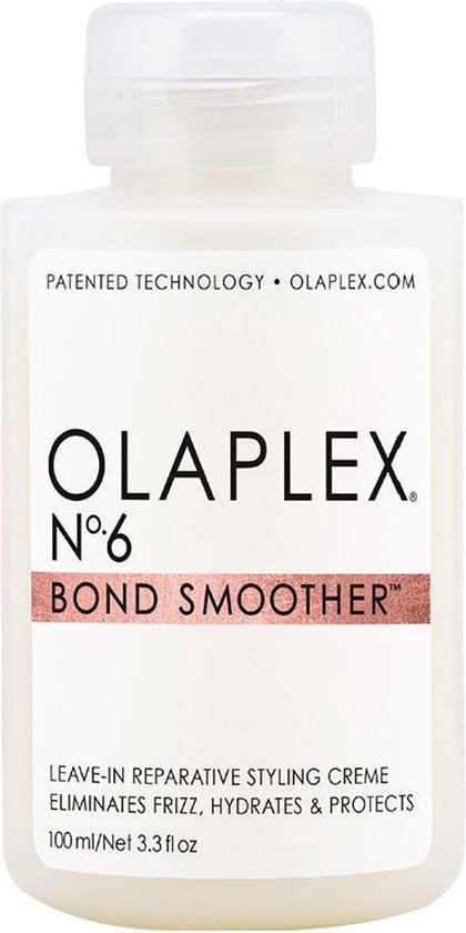 Olaplex No. 6 Bond Smoother Styling Crème is een herstellende leave-in haarcrème geschikt voor alle haartypes. De geconcentreerde crème heeft een verzachtende werking en is snel in gebruik doordat het niet uitgespoeld hoeft te worden. Door de milde formule is de crème ook geschikt om te gebruiken op gekleurd en chemisch behandeld haar. Deze haarcrème versterkt, hydrateert en maakt het haar glad en soepel. Daarnaast zorgt het product dat de droogtijd na het wassen wordt versneld. Bovendien elimineert de crème pluizend haar en ongewenste plukjes tot wel 72 uur. Dit product is extreem geconcentreerd waardoor het haar niet wordt verzwaard na het aanbrengen.