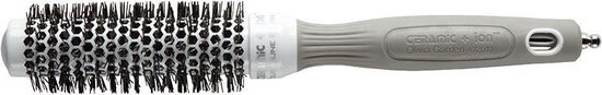 Zoek je een föhnborstel die je haar ioniseert zodat het minder pluist en die je hoofdhuid tevens masseert? Dan is de Olivia Garden Ronde Borstel wat voor jou!De keramische borstel warmt snel op en brengt de warmte van je föhn perfect over op je haar waardoor je sneller en beter kunt stylen. De grote ventilatiegaten zorgen voor een goede luchtstroom. Door de ioniserende werking van de borstel wordt je haar minder statisch waardoor het er schitterend uitziet!