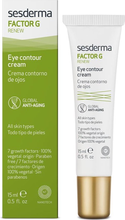 De Oogcontour Factor G Renew Sesderma (15 ml) is een kwaliteitsproduct dat is ontworpen voor veeleisende personen die zorg dragen voor hun uitstraling en op zoek zijn naar de beste cosmetica om hun schoonheid extra in de verf te zetten. Als jij een van hen bent, zijn de 100 % originele Sesderma producten voor jou gemaakt.