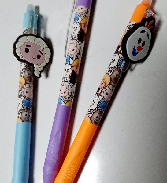 Frozen – 3x uitwisbare gelpen – oranje paars blauw – olaf en elsa – gelpennen