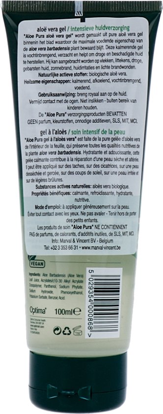 Optima brengt nu onder het merk Aloe Pura de Aloë Vera Gel in. De Aloë Vera is biologisch geteeld en bestaat daarom 99,9% uit biologische ingrediënten. Organic Aloe Vera Gel is vochtinbrengend en verzachtend, dus ideaal voor het herstellen van een droge huid. Daarnaast bevordert Aloë Vera het herstellende vermogen van de huid. Bent u bang dat andere cosmetica en vochtinbrengende producten verschillende hoeveelheden van chemische stoffen bevatten? Dan is de organische aloë vera gel voor u de beste optie om te gebruiken op uw huid