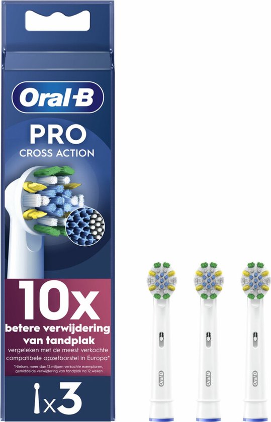 Oral-B Opzetborstels Pro Floss Action <p>De Oral-B Pro Floss Action opzetborstel beschikt over speciaal ontwikkelde MicroPulse-borstelharen die tandplak losmaken om tot 100% meer tandplak te verwijderen dan een gewone handtandenborstel. Echte Oral-B opzetborstels zijn ontworpen met nieuwe X-vormige borstelharen die reinigen op plaatsen waar ronde borstelharen niet bij kunnen. Dankzij de gebruiksindicator op de borstelkop veranderen borstelharen van groen naar geel om u te laten zien wanneer je hem moet vervangen om een 100% reinigende werking te behouden. Gegarandeerd geschikt voor Oral-B oplaadbare tandenborstels behalve Pulsonic en iO tandenborstels.</p> <ul> <li>Alleen echte Oral-B opzetborstels hebben X-vormige borstelharen die reinigen op plekken waar gewone borstelharen niet bij kunnen voor een optimale reiniging</li> <li>De Oral-B Floss Action heeft unieke interdentale borstelharen om diep tussen de tanden te reiken en tandplak weg te vegen</li> <li>Gegarandeerd geschikt voor Oral-B oplaadbare tandenborstels behalve Pulsonic en iO tandenborstels</li> <li>Gebruiksindicator voor borstelkop: borstelharen veranderen van groen naar geel om je eraan te herinneren wanneer je hem moet vervangen om een 100% reinigende werking te behouden</li> <li>Oral-B is het meest gebruikte tandenborstelmerk door tandartsen wereldwijd met klinisch bewezen resultaten</li> <li>10x betere tandplakverwijdering dan Europa’s meest verkochte compatibele opzetborstel*</li> </ul> <p>* Nielsen sales van de afgelopen 12 maanden. 12 weken gemiddelde tandplakverwijdering</p>