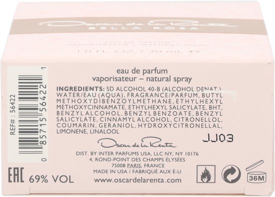 Fruity woody citrus and floral notes enchant wearers of Bella Rosa a womens Chypre fragrance from Oscar de la Renta Launched in 2019 this scent is a creation of accomplished perfumer Harry Freemont Top notes include a rosy note of pink pepper matched with green and pepper freesia and with juicy mandarin orange