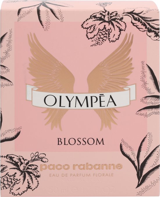 Olympéa Blossom onderscheidt zich met een verfrissend, lichtroze flacon waarover een boeket van zwarte bloemen, geïnspireerd op de styling van Paco Rabanne, bloeit. De goddelijke vrouwelijkheid komt tot uiting in elk detail.