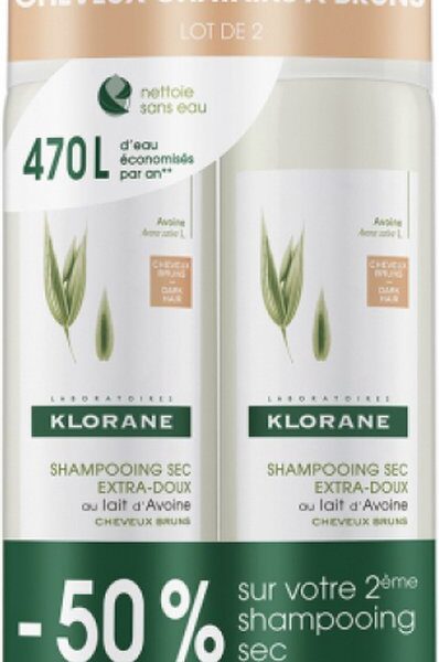 Klorane Oatmeal Dry Shampoo For Brown Hair 2x150ml
