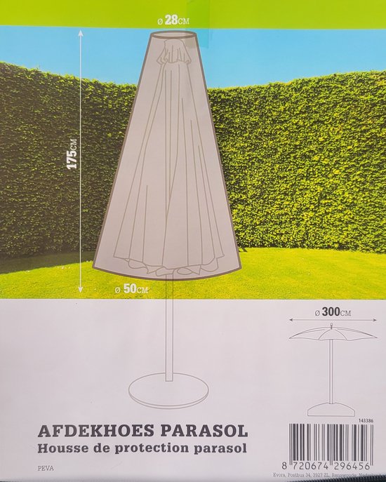 <p>Parasolhoes 50×175 cm cm – Luxe afdekhoes voor parasol – donkergroen Peva</p> <p>voor parasols van 3 meter breed</p>