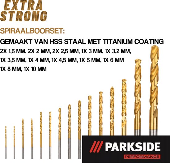 Parkside Performance HSS-Staalborenset Titaan Gecoat Voor Extreem Hoge Standtijden – Inclusief Opbergkoker van Kunstof – 15 delig