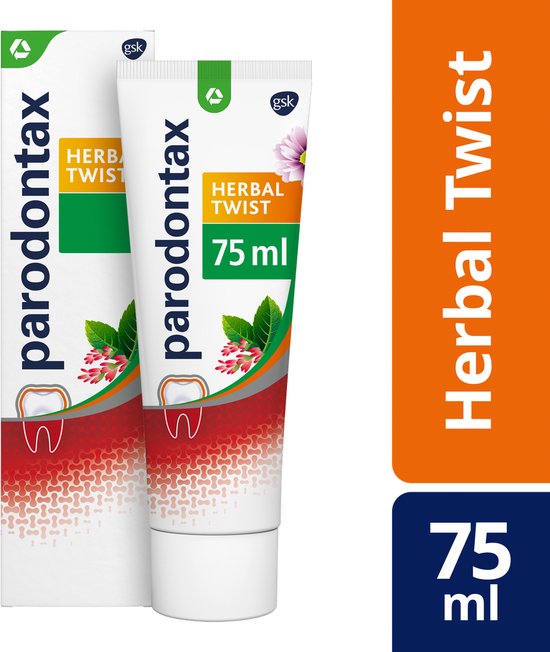 Parodontax Herbal Twist heeft een unieke smaak-combinatie van gember extract en mint voor een schone, frisse en kruidige sensatie.Parodontax is speciaal ontwikkeld om tandplak te verwijderen. Het werkt doordat het de opbouw van tandplak tegengaat. Parodontax is 4x effectiever in het verwijderen van tandplak dan gewone tandpasta*. Parodontax Herbal Twist heeft een unieke smaak-combinatie van gember extract en mint voor een schone, frisse en kruidige sensatie.Het is klinisch bewezen dat dagelijks poetsen met Parodontax helpt tegen bloedend tandvlees en tandvlees problemen voorkomt. Om bloedend tandvlees te helpen stoppen en voorkomen, gebruik trouw 2x daags.