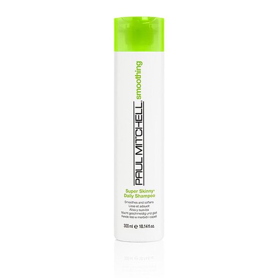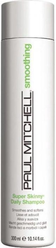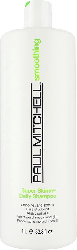 Paul Mitchell Smoothing Super Skinny Daily Shampoo Reinigt en verzacht het haar Maakt rebelse lokken zachter en beter beheersbaar Vermindert de droogtijd en versnelt de styling Onze exclusieve Super Skinny A r Complex zorgt voor een gladder oppervlak Milde oppervlakte actieve stoffen reinigen zonder het haar aan te tasten of het haar meer volume te geven Color safe formule Gebruik Een kleine hoeveelheid aanbrengen inmasseren en uitspoelen