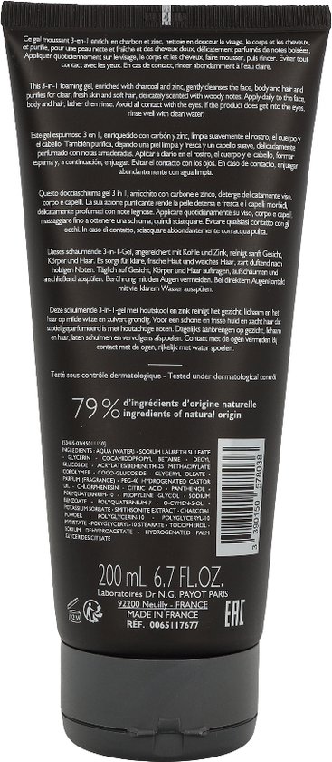 Payot Gel Nettoyage Integral is een frisse en diep reinigende douche gel. Deze gel heeft de bekende geur van de optimale mannen verzorgingslijn, gecombineerd met de verkwikkende weldaad van mineralen en sporenelementen. Deze douchegel stimuleert en zuivert. De gel reinigt het gezicht, lichaam en het haar. De douchegel is geschikt voor alle huid- en haartypen. Deze Payot Gel Nettoyage Integral douche gel is geschikt voor mannen.