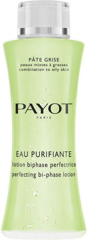 Payot Pate Gris Eau Purifiante is een verzorgende twee fasen lotion die ontstekingen uitdroogt en de huid zuivert en matteert. Deze water-in-poeder lotion is speciaal bedoeld voor de gecombineerde tot vette huid en heeft een houtachtige geur met bloemige noten van Roos en Water bloem. Payot Gris Eau Purifiante bevat Zink extract, Salicylzuur en Chileense Mint Extract. Hierdoor drogen onzuiverheden uit en matteert de huid. De huidstructuur verfijnt en wordt geëgaliseerd. Daarnaast nemen imperfecties af en wordt het totale huidbeeld verbeterd.