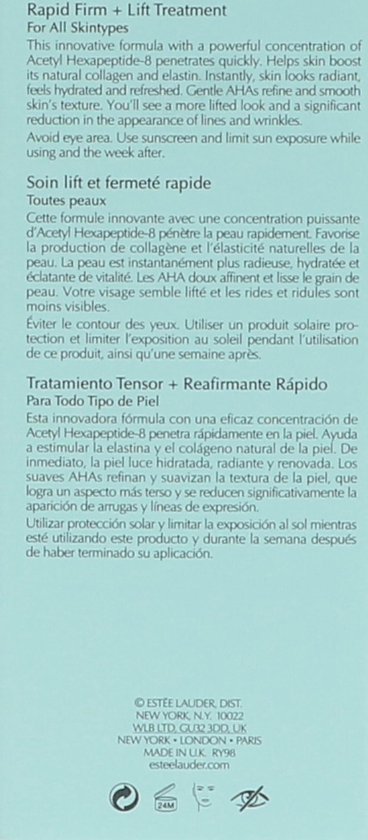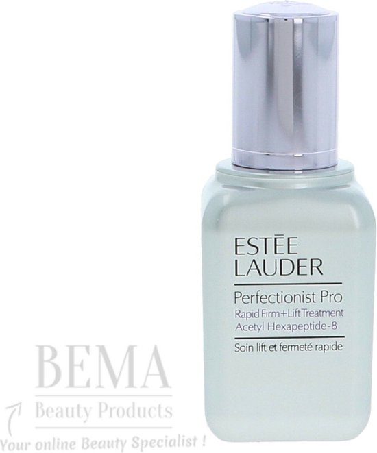 EstA c e Lauder Perfectionist Pro Rapid Firm Lift Treatment Dit serum hydrateert verfrist en voelt zacht aan Het serum maakt de huid gladder ziet er voller uit en fijne droogtelijntjes worden verzacht In slechts twee weken wordt de huid steviger en meer gelift De contouren van het gezicht de wangen en de kaaklijn voelen strakker aan en lijntjes en rimpels worden spectaculair verminderd Dit serum bevat geen Uv filter ben dus altijd nog een dagcrA me aan waar deze wel in zit Gebruik Breng het serum elke ochtend en avond aan op het gezicht Vermijd hierbij de oogcontouren