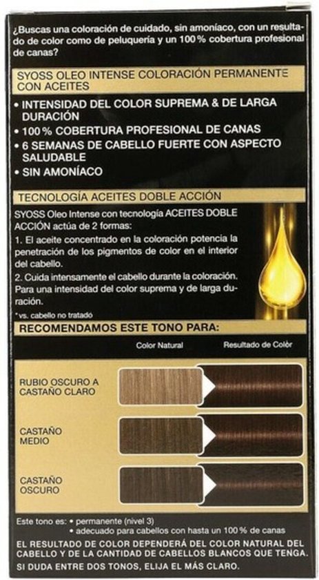 Want to enhance your image and highlight your beauty? Then the Permanent Dye Olio Intense Syoss Nº 3,10 Brown will help you to achieve your goals! Enjoy the benefits and advantages of Syoss products and other hairdressing accessories from 100% original brands.