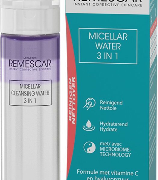Remescar Micellair Water 3 in 1 – Gezichtsreiniger met vitamine C en Hyaluronzuur, Make Up Remover voor intensieve reiniging van de huid en verwijdering van onzuiverheden, Face Wash voor hydratatie en reiniging, 200 ml