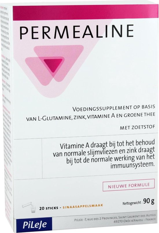 L-Glutamine, Natuurlijk sinaasappel aroma, Vitamine A (bètacaroteen), Maltodextrine, Groene thee (Camellia sinensis) blad extract, Zuurvormer (Citroenzuur), Zinkgluconaat, Zoetstof (Sucralose).