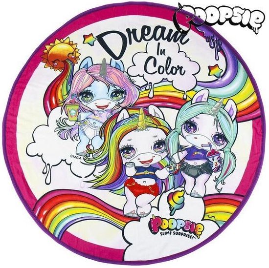 Een mooi kleurrijk rond strandlaken met Poopsie opdruk.