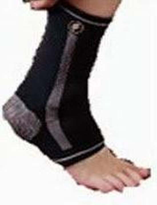 De brace zorgt voor een sterke en effectieve ondersteuning van verzwakte spieren en gewrichten waardoor vochtophopingen worden voorkomen. Door het verwarmende effect stimuleert het de doorbloeding wat de genezing bevordert. Small 18-25 cm, Medium 25-32 cm, Large 32-39 cm. Meten over breedste gedeelte enkel