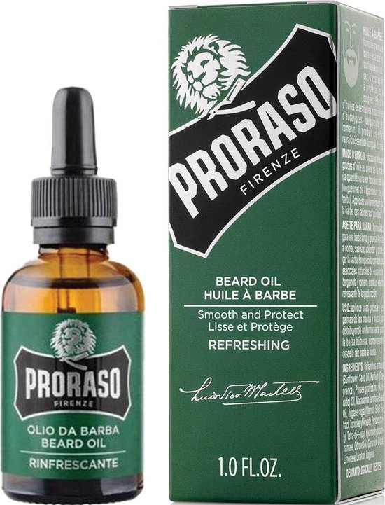 Proraso Baardolie Refreshing hydrateert niet alleen je baard, maar ook de huid onder je baard. Op die manier heb je minder kans op witte vlokken, ook wel baardroos genoemd. Dit Italiaanse product is vegan en bevat geen parabenen, sulfaten, siliconen of kleurstoffen.