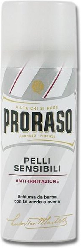 Proraso Shaving Foam Peli Sensibili voor Gevoelige Huid Deze dikke formule beschermt de huid als een onzichtbaar schild en helpt het scheermes soepel te laten glijden zonder irritatie en snijwondjes Haver extract heeft verzachtende en kalmerende effecten en respecteert de pH van de huid De Groene Thee is rijk aan natuurlijke antioxidanten en mineralen Thymusextract heeft natuurlijke antibacteriA