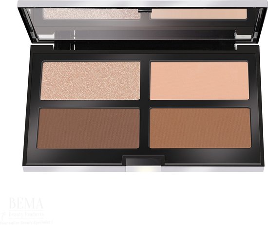 Dit palette bevat zowel lichte als donkere poederkleuren. Door middel van contouren geef je het gezicht meer vorm en definitie. Strobing zorgt er voor dat bepaalde delen van het gezicht meer opgelicht worden. Hierdoor krijgt het gezicht ook meer definitie. Het palette bevat zowel matte als glanzende kleuren.