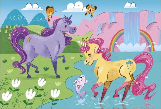 Clementoni Supercolor set met 2 Unicorn puzzels van 20 stukjes, met prachtige illustraties van eenhoorns. Geschikt voor kinderen vanaf 3 jaar.