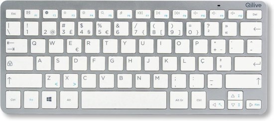 Qilive 883210. Toetsenbord formaat: Mini, Stijl toetsenbord: Recht, Connectiviteitstechnologie: Draadloos, Aansluiting: RF Wireless + Bluetooth, Toetsenbord toetsschakelaar: Membraan keyswitch, Toetsenbordindeling: QWERTY, Aanbevolen gebruik: Universeel. Kleur van het product: Grijs, Wit