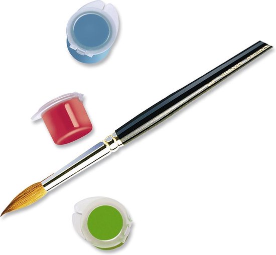 Inhoud: 5 kleuren acrylverf in hersluitbare potjes, penseel, voorbeeldblad, 1 schilderpaneel en 1 lijstje
