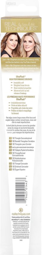 Real Techniques Bold Metals 102 Traingle Concealer Ref 01443 De driehoek concealer kwast met vlakke rand bestrijkt grote delen van het gezicht en de schuine randen rond de oogcontour neus en kin om imperfecties te maskeren