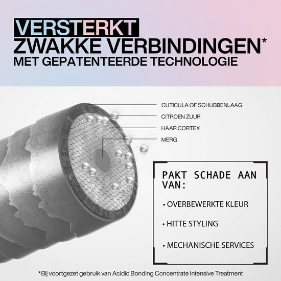 De Acidic Bonding Concentrate Leave in Treatment is speciaal ontwikkeld voor beschadigd haar Het product is verrijkt met o a Citroenzuur en een geconcentreerd verzorgingscomplex Deze ingrediA