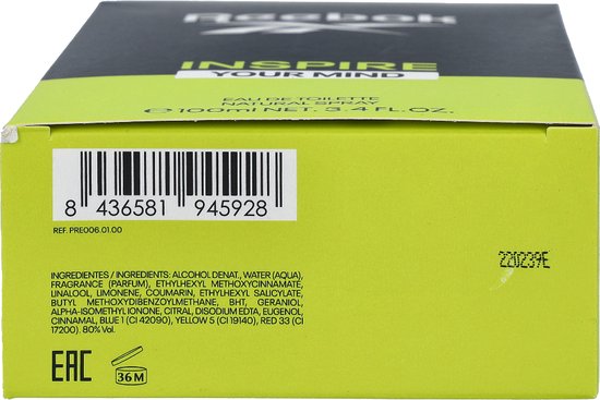 Reebok Inspire tu mente es una fragancia sensual y original que se abre con un acuerdo distintivo de pimienta blanca indonesia, combinada con fruta yuzu. En la nota del corazón, el primer violín es interpretado por Woody Notes y un cactus de Arizona. La composición termina con una nota cálida de vainilla y un elegante y elegante ámbergris.