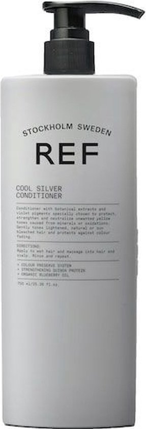 REF Cool Silver Conditioner is een rijke conditioner met violet pigmenten. Deze pigmenten zorgen ervoor dat ongewenste geel of koperkleur bij blond haar en door de zon gebleekt haar geneutraliseerd worden. Daarnaast krijgt grijs haar een zilverkleurige gloed.