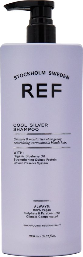 REF Cool Silver Shampoo is een rijke, crèmeachtige shampoo met violet pigmenten. Deze pigmenten zorgen ervoor dat ongewenste geel of koperkleur bij blond haar en door de zon gebleekt haar geneutraliseerd worden. Daarnaast krijgt grijs haar een zilverkleurige gloed. De REF Cool Silver Shampoo is de directe opvolger van de REF Silver Shampoo 343 en is vrij van parabenen.