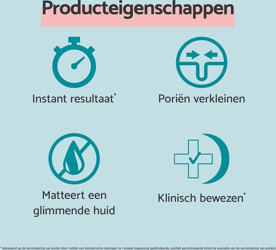 Klinisch bewezen om de poriën te verminderen – Poriën zijn noodzakelijk voor onze huid; ze verspreiden talg over de huid, wat nuttig is om de huid als een goede barrière te laten fungeren. Zonder talg wordt onze huid droog en vatbaar voor irritatie. Grote poriën zijn verstopte of uitgerekte poriën. Wanneer de talgproductie van de huid uit balans is, bijvoorbeeld door een opeenhoping van dode huidcellen of hormoonschommelingen, kunnen sommige poriën verstopt raken.