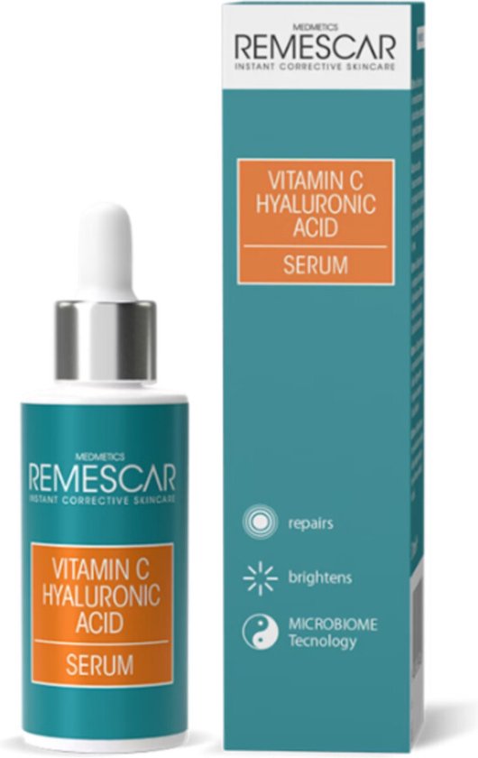 Remescar Vitamine C Serum met Hyaluronzuur – Herstellende en hydraterende serum, Gezichtsverzorging collageen serum voor een stralende huid, met Microbiome Technologie, 30 ml