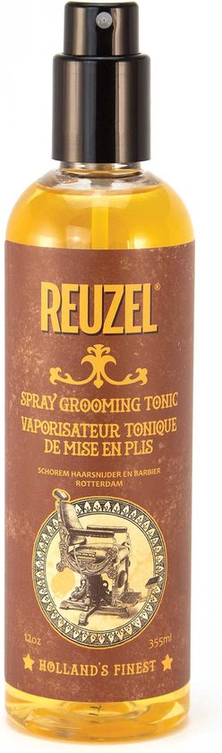 ..Geef het haar een langdurig, maar natuurlijke hold en feeling met de Reuzel Spray Grooming Tonic. Reuzel Spray Grooming Tonic is onmisbaar bij het föhnen en alle andere soorten van warmte styling. De tonic geeft het haar meer volume, lift of textuur. Het haar blijft langdurig in model, maar voelt niet stijf of plakkerig aan. Dankzij de speciale formule blijft het haar een natuurlijk gevoel behouden. Reuzel Spray Grooming Tonic is verkrijgbaar in 100ml en 355ml. * Kenmerken Reuzel Spray Grooming Tonic * Styling tonic * Voor gebruik bij föhnen en andere soorten warmte styling * Geeft volume, lift of textuur * Houdt het haar langdurig in model * Maakt niet stijf of plakkerig * Voor een natuurlijke hold en feel * Inhoud: 355ml Gebruiksaanwijzing:Doseer een kleine hoeveelheid in de handpalm en breng het aan op vochtig haar. Style zoals gewend.